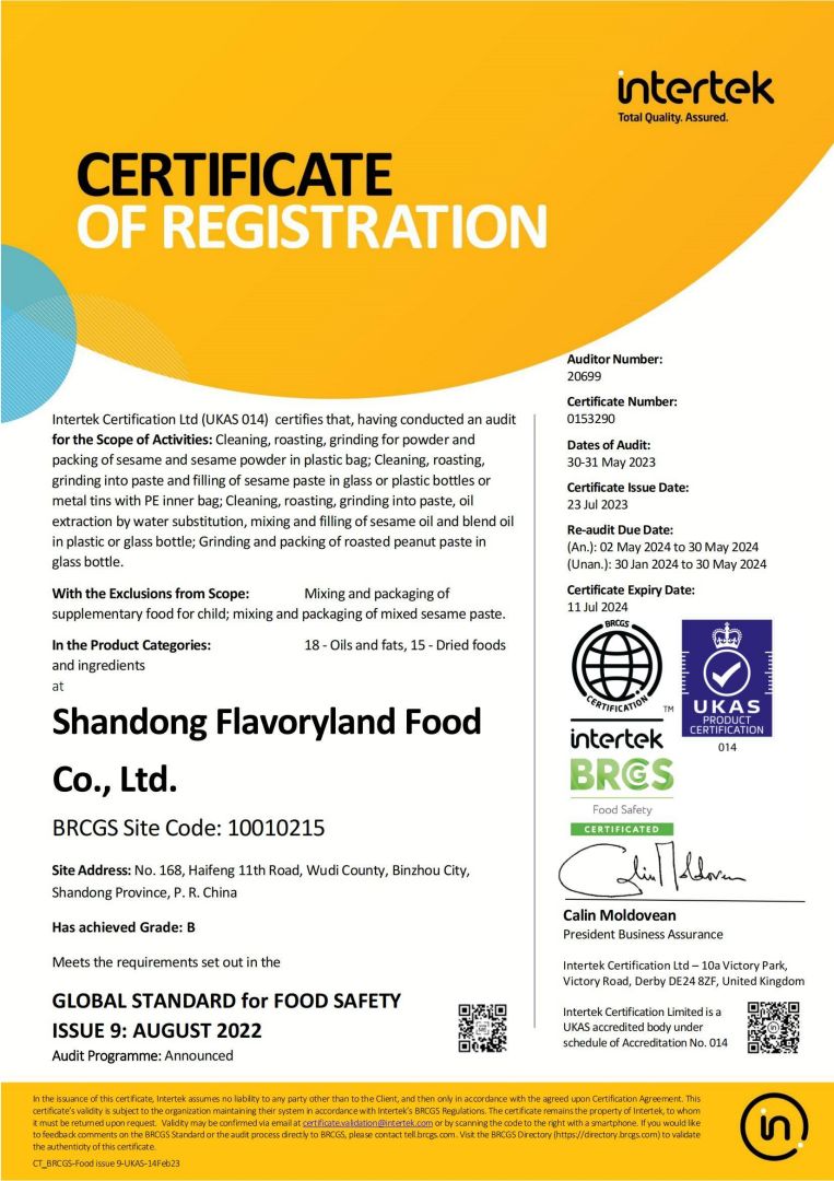 1、原生態石磨工藝生產,無任何添加劑 2、100%純芝麻食品,出口級質量標準; 3、產品質量安全可追溯,HACCP認證; 4、優選優質原料,保障產品高品質。 5、12道工序嚴格檢測,確保了產品符合國家標準和出口標準 ?